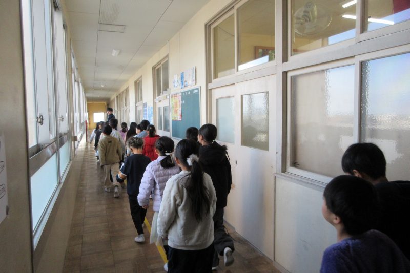 子どもたちは放送や先生の指示をよく聞き、落ち着いて行動することができました。避難完了後は、校長先生から「自分の命を守る行動の大切さ」についてのお話がありました。子どもたちは最後まで静かに話を聞き、防災への意識を高めることができました。