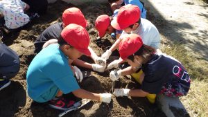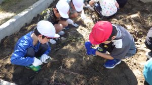 2年生 いもほりをしたよ! 2025.10.17 by writer5 0 今日は二年生でいもほりをしたよ! 今年は暑さの影響なのか、あまりとれず少し残念でしたが、いもを見つけると大歓声が上がりました!