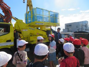 ●高所作業車に乗った子は、「すごく高くて、ぐるっと回転したよ」「神守小学校が見えたよ」と、驚きの声がありました。