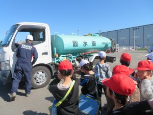 たくさんの種類の車があり、実際に動くところを見せてもらったり、どんな仕事をするのか、職員の方たちから教えていただいたりしました。