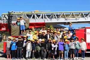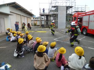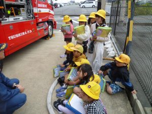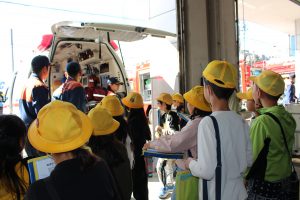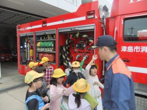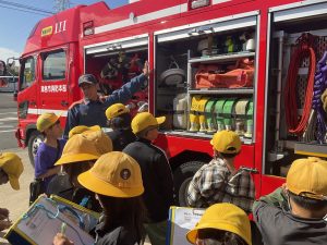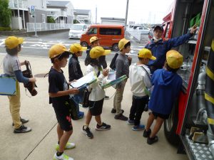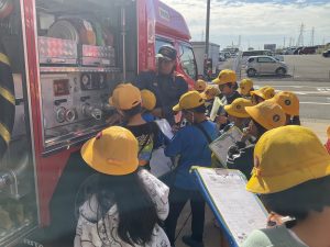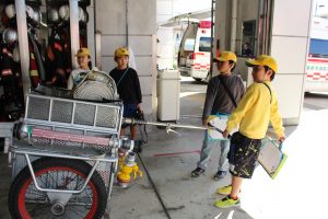 3年生は、社会科の学習の一環で津島市消防本部へ行ってきました。今回も移動は名鉄バスを利用し、マナーを守って乗車することができました。消防本部では、まず消防士さんの訓練を見させてもらいました。実際の現場を想定した素早く、迫力のある姿に子どもたちの目は釘付けでした。また、放水体験や庁舎・車両の見学もさせてもらいました。ホースが重く、水を出すと勢いが強くなることから、筋力をつけることの大切さを学びました。庁舎・車両見学では、学校の勉強では知ることのできないことをたくさん教えてもらったり、実際に使っている様子を見せてもらったりしました。