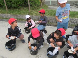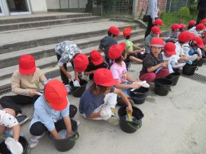 「こうやって持つとやりやすいって、お母さんから教えてもらった!」など、目を輝かせていました。