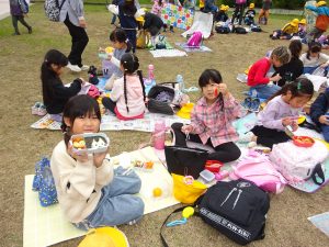 お昼には、おいしいお弁当を ありがとうございました。「もっと 食べたーい」とモリモリ食べていました。