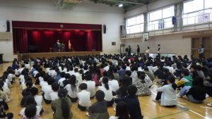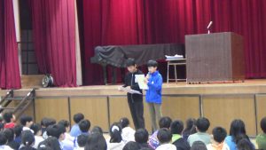 本日、朝礼を行いました。表彰では体育館があたたかい拍手に包まれました。校長先生からは、地震のお話がありましたね。今週土曜日は、防災訓練があります。ご家庭でも、防災について話し合っていただけたらと思います。