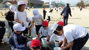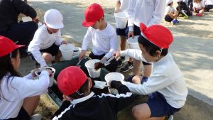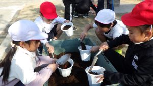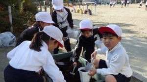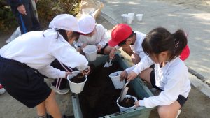登下校や掃除など、たくさんお世話になっている6年生へ感謝の気持ちを込めて、チューリップの球根を植えました。