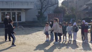 大縄大会の練習を行いました。どのグループも、声を掛け合いながら楽しく活動できましたね☆