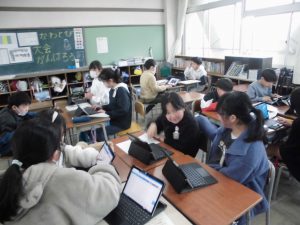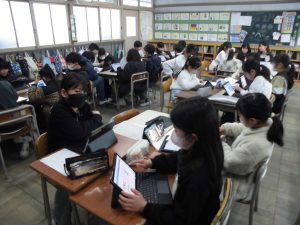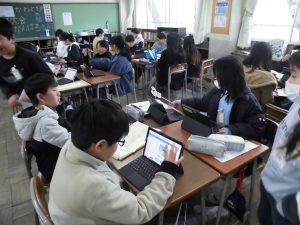 4年生 総合の発表に向けてがんばっています! 2026.02.17 by writer5 0 1年間学習してきた総合の環境問題について、グループで協力しながら発表の準備をがんばっています。タブレットを使って、一人ひとりが自分の発表に必要なスライドを一生懸命作っています。クイズなども入れながら、楽しい発表になるように工夫しています!