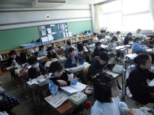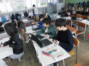 3年生 あたたかくなってきました 2026.03.11 by writer5 0 3月に入り、陽気な日が増えてきました。 1組は、作品バックに絵をかいたり、運動場で体を動かしたりしました。2組は、理科のじしゃくのまとめをしました。