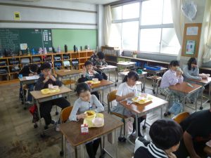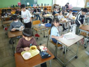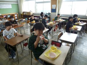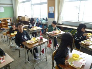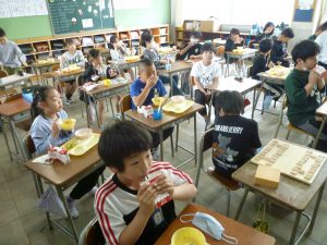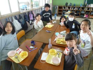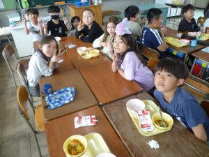 本日から、給食や午後の授業も始まりました。給食のメニューはカレーでした。たくさん食べ、丈夫な体を作っていきましょう。