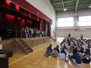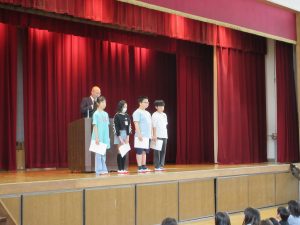 未分類 認証式を行いました 2026.04.20 by kamori-e 0 体育館で、前期児童会役員、学級委員長の認証式を行いました。 名前を呼ばれると、どの児童も大きな声で返事をし、これからの活動への意欲と責任感が感じられました。 これからの活躍を期待しています。