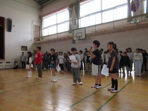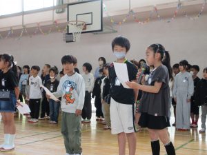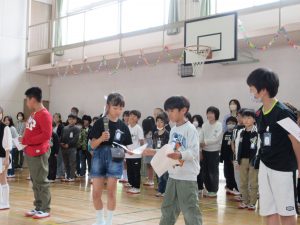 1年生を迎える会をしました。4年生は、保健室についてのクイズを出しました。1年生を笑顔で迎えることができました。